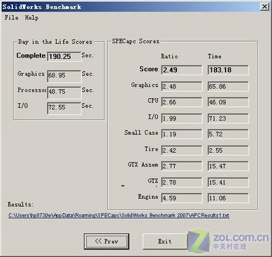 SPECapc for Maya 6.5的參考系統(tǒng)配置為至強(qiáng)2.4Ghz、2GB PC800 ECC RAMBUS內(nèi)存、NVIDIA Quadro FX1000顯卡、40GB ATA硬盤。參考系統(tǒng)在SPECapc for Maya 6.5中的得分為1。 SPECapc for SolidWorks 2007測試結(jié)果SPECapc for SolidWorks 2007的結(jié)果包括1項(xiàng)I/O測試、1項(xiàng)CPU測試和6項(xiàng)顯卡測試。得分也是和參考測試系統(tǒng)比較而來,參考系統(tǒng)配置依舊是至強(qiáng)2.4Ghz、2GB PC800 ECC RAMBUS內(nèi)存、NVIDIA Quadro FX1000顯卡、40GB ATA硬盤。參考系統(tǒng)在SPECapc for SolidWorks 2007中得分為1。