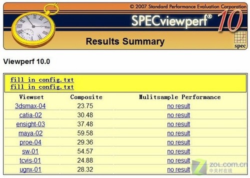 6、專業(yè)性能測試 SPECviewperf 10結(jié)果 SPECviewperf 10相對于之前的軟件做了很大的改進(jìn),提供了分辯率選擇,可選1280x1024、1600x1200模式,支持全屏抗鋸齒功能,支持多線程測試功能。我們采用了1280x1024的測試模式,未開始抗鋸齒功能。