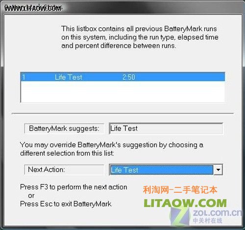 再來(lái)看看ThinkPad T400這款筆記本的電池續(xù)航能力測(cè)試,我們交由BatteryMark軟件來(lái)完成。在測(cè)試開(kāi)始之前,還是來(lái)看一下隨機(jī)配備的電池規(guī)格情況。由上面的圖片可以看到,整機(jī)標(biāo)配有一顆六芯10.8V 5.2Ah的鋰離子電池。與機(jī)身散熱情況相同,由于采用了性能強(qiáng)勁的獨(dú)立顯卡設(shè)計(jì),我們并不十分看好這款筆記本的電池續(xù)航能力。