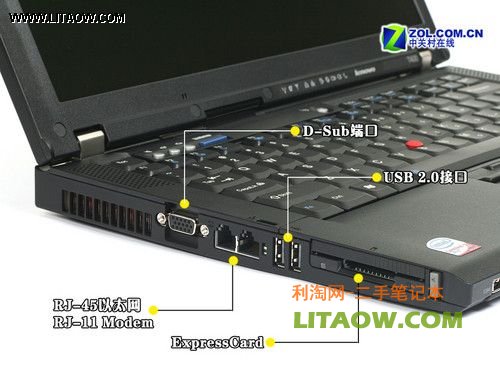 簡(jiǎn)潔實(shí)用一直都是聯(lián)想ThinkPad系列筆記本接口布局的特點(diǎn),T400同樣如此。雖然沒(méi)有提供更多的功能,但每一個(gè)接口的布局和位置都十分的合理。特別是提供了橫豎兩種結(jié)構(gòu)的USB 2.0接口,既起到了節(jié)省機(jī)身空間的作用又不影響到消費(fèi)者的正常使用,可謂一舉兩得。那么下面,我們就一起來(lái)詳細(xì)的查看這款筆記本的接口分布情況。
