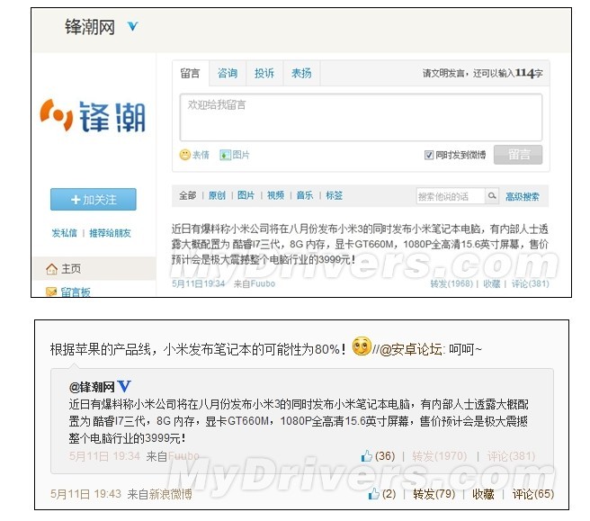 我們現(xiàn)在看到的小米已經(jīng)做手機(jī)了并且后期又發(fā)布了盒子,不過這次的消息是另外比較有意思,那就是有業(yè)內(nèi)人士預(yù)測小米會在今年或者明年推出筆記本電腦,定價(jià)估計(jì)是整個(gè)行業(yè)都沒有想到的3.9K左右,并且放言配置將會是非常高端使用處理器是i7系列,以及配備一個(gè)8GB的標(biāo)準(zhǔn)內(nèi)存搭載GT660M獨(dú)立顯卡,這個(gè)西歐阿西是來自安卓論壇評測室的業(yè)內(nèi)人士發(fā)表的,當(dāng)然了筆記本電腦與手機(jī)的區(qū)別還是有非常大的,并不是簡單的尺寸變化你需要考慮的東西還有散熱以及鍵盤的設(shè)計(jì)以及使用中的一些穩(wěn)定性等等,這些考慮的估計(jì)要比手機(jī)電路設(shè)計(jì)考慮多的多。