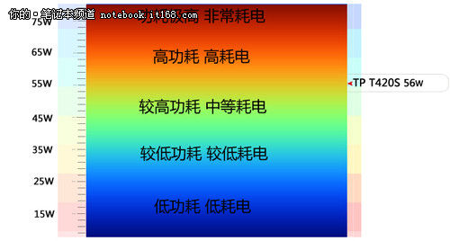 從測試結(jié)果來看,憑借32nm工藝制程的處理器搭配,其產(chǎn)品的整體功耗并不夸張,在高負(fù)載運(yùn)行環(huán)境下的整機(jī)功耗僅為56W。只是由于機(jī)身模具的設(shè)計(jì)加之內(nèi)部空間較小,ThinkPad T420S筆記本在長時(shí)間高負(fù)荷工作環(huán)境下,其C面的左側(cè)區(qū)域有出現(xiàn)少許的熱量堆積。相比之下,其底部核心部件的熱量堆積更為明顯,在靠近處理器出風(fēng)口位置達(dá)到了49攝氏度。機(jī)身最高溫度來源于處理器主出風(fēng)口,達(dá)到65攝氏度左右。由于通風(fēng)口設(shè)計(jì)在了機(jī)身背部,如此的發(fā)熱量對(duì)于用戶的影響不大。