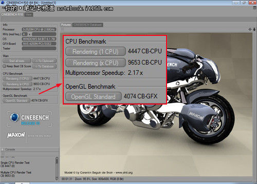 ▲處理器渲染能力測試(CINEBENCH R10)