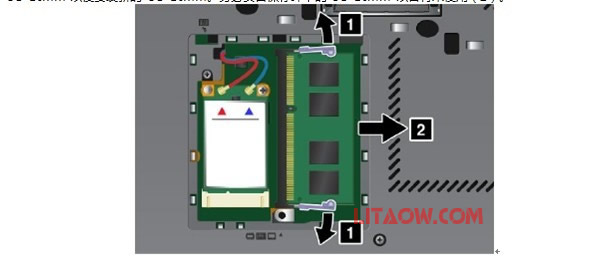 下面你就可以看到內(nèi)存位置了,內(nèi)存上首先1 掰開兩邊固定的鋼架子,然后2拔出來就可以了,內(nèi)存旁邊是預(yù)留的位置安裝3G模塊使用的