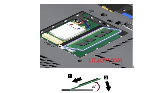 然后就可以看到這臺二手T420鍵盤下面的內(nèi)存位置了,一般來說內(nèi)存上面有個小的塑料片防止灰塵等,和后面的拆卸一樣按照下圖中操作就可以了
