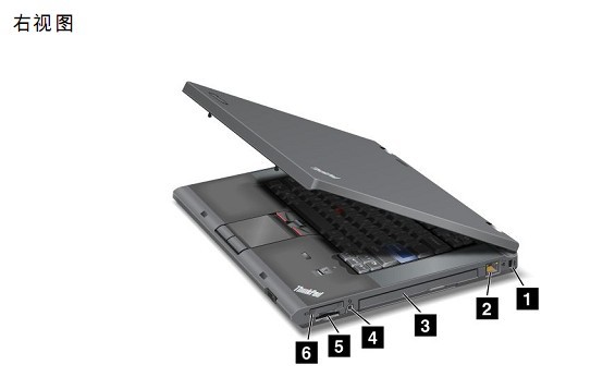 下面我們首先那一臺W520的筆記本從右側(cè)照片看看所有的硬件和接口有哪些: