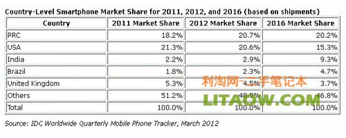 這個數(shù)據(jù)是來自國內(nèi)的一家IDC研究的報告,國內(nèi)使用智能手機的份額大約占了全球的百分之20.7,而美國今年的統(tǒng)計是大約百分之20.6,預(yù)計在今年的年內(nèi)我們中國將會成為全球最大的智能手機消費市場,其排名第二的是美國第三名是英國還有后面的就是硬度和巴西了,當(dāng)然這個還是得益于蘋果的iphone手機以及安卓的操作系統(tǒng),特別是安卓的操作系統(tǒng)使得國內(nèi)非常多的山寨手機第一次能使用一個不錯的操作系統(tǒng)了。