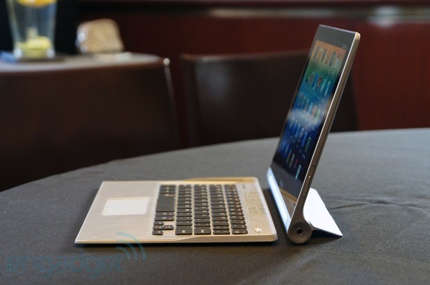 安卓版的聯(lián)想yoga平板電腦接口配備上都比較齊全帶兩個內(nèi)置的USB接口,擴展性總體上對比其他的一些平板機型來說還是非常不錯的,全尺寸鍵盤使用了藍牙無線傳輸內(nèi)置可以安裝2節(jié)5號的電池即可開始連接到平板電腦操控使用,據(jù)官方宣傳資料上看下面的這個鍵盤里面應該還配備了一個額外的硬盤,但是只能是接AC電源模式的時候才會啟用,主要是為了在使用電池的時候能達到更長的待機時間,主攝像頭就只有一個了那就是前面前置的300萬攝像頭可以錄制高清的1080P視頻資料!