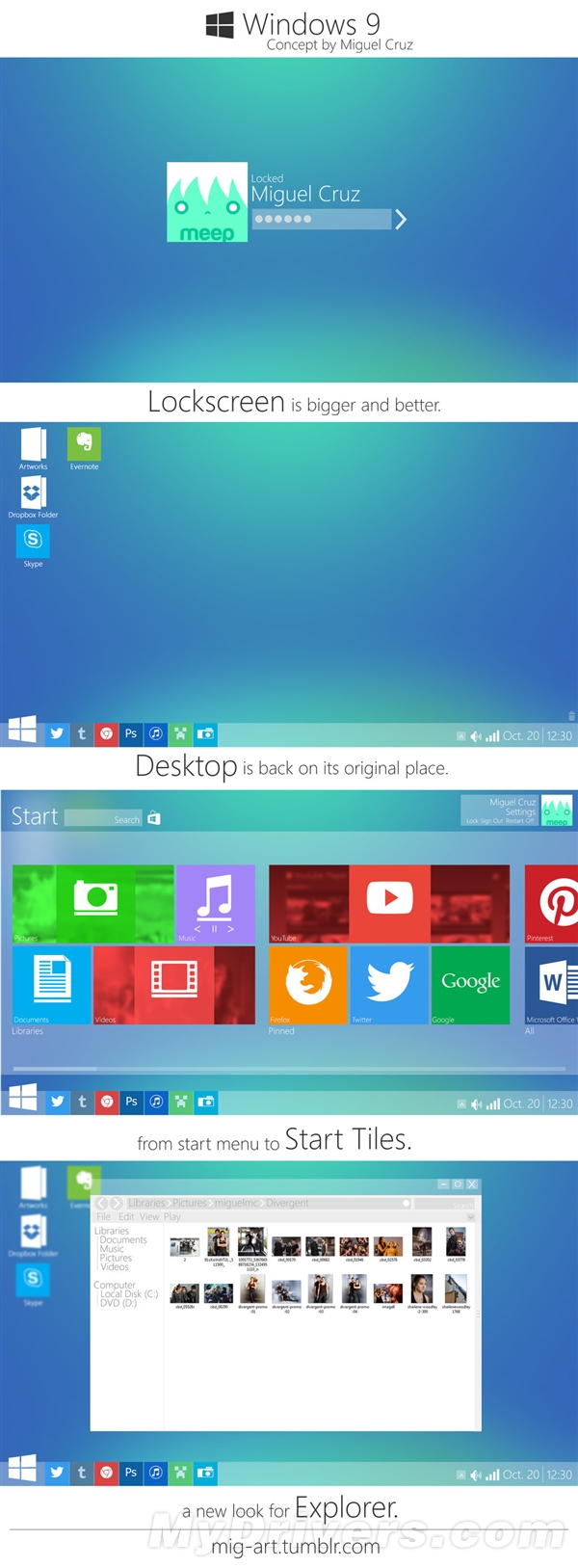 windows9的系統(tǒng)雖然說微軟自己沒有發(fā)布也不知道會是個什么樣子,但是有個設(shè)計師就給出來你一個樣子了,因為常年為這些操作系統(tǒng)設(shè)計一些UI因此他也大概知道一些趨勢,因此給出來這些效果圖應該來說會完全扁平化的一個風格,同時也保留了經(jīng)典的桌面和新的UI前面的界面,由于都轉(zhuǎn)向了一個更寬更窄的界面因此你看到的效果會和帶魚拆不到,同時也應該會加入傳統(tǒng)可以看到的開始按鈕以及新任務欄等等,當然一些改變和一些升級最終用戶使用覺得滿意的話才可以,畢竟現(xiàn)在win8.1的系統(tǒng)筆者覺得不算一個非常成功的系統(tǒng),未來如果win9能更多的考慮到使用者習慣的話相信會不錯的。