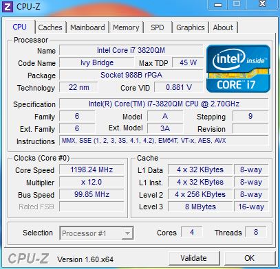 | 處理器 | Intel Core i7-3820QM 主頻2.70GHz 睿頻3.70GHz | |||||