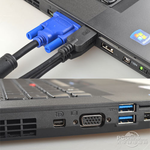 ThinkPad W530將之前的標(biāo)準(zhǔn)DisplayPort變?yōu)閙ini DisplayPort,所以占用空間更小,只是不明白為何要將之前鎖扣機(jī)構(gòu)的標(biāo)準(zhǔn)DisplayPort更換為稍顯不牢靠的mini DisplayPort,或許從今年開始Intel要開始推廣Thunder Bolt的緣故吧。(Thunder Bolt接口形狀與mini DisplayPort相同,未來在通用性上更易部署。)